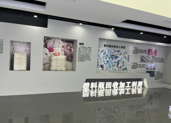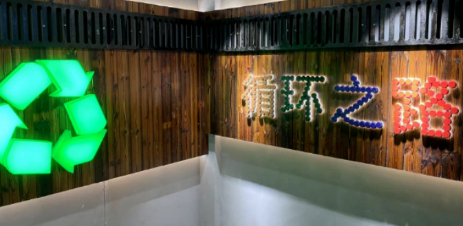 兼具创新性与功能性的环保展厅。在康桥镇两网融合中转站内有一个科技感十足的再生资源科普展厅,建筑面积约800平方米。展厅以两网融合中转站为基础,让前来参观的市民可以直接了解中转站内工作人员的分选、打包、转运等操作环节。以垃圾分类工作纪实、垃圾“围城”、再生资源分解中端流程、城市美好愿景、垃圾分类教学体验等作为展示专题,通过电子投影沙盘、联动多媒体实物触控、VR等技术,向社会大众普及垃圾分类、再生资源循环利用知识。展区内的环保小课堂可为观展者提供环保手工DIY活动,寓教于乐,也有助于进一步传播“变废为宝”“天下无废”的环保理念。