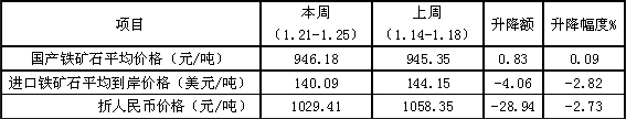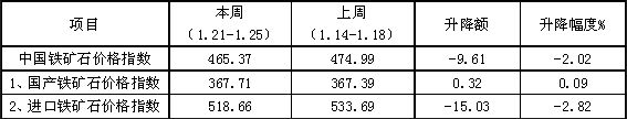 中国铁矿石价格指数(CIOPI)1月21日至1月25日