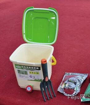 有了这套装置,居民只需将家中的各类厨余垃圾滤干水分后倒入堆肥桶内,并撒上发酵菌,搅拌均匀并压实,最短4周时间,有机肥就能派上用场了。