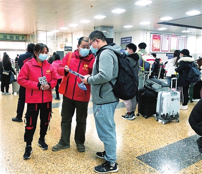 当天下午,身穿红色马甲的志愿者走进河源客家文化公园、茶山公园,为市民耐心讲解防疫知识,发放疫情防控宣传手册,并劝导市民日常出行要自觉佩戴口罩。在新城汽车客运站、河源火车站等地,志愿者还为司机和旅客提供体温监测、发放口罩、维持秩序、咨询引导等服务。